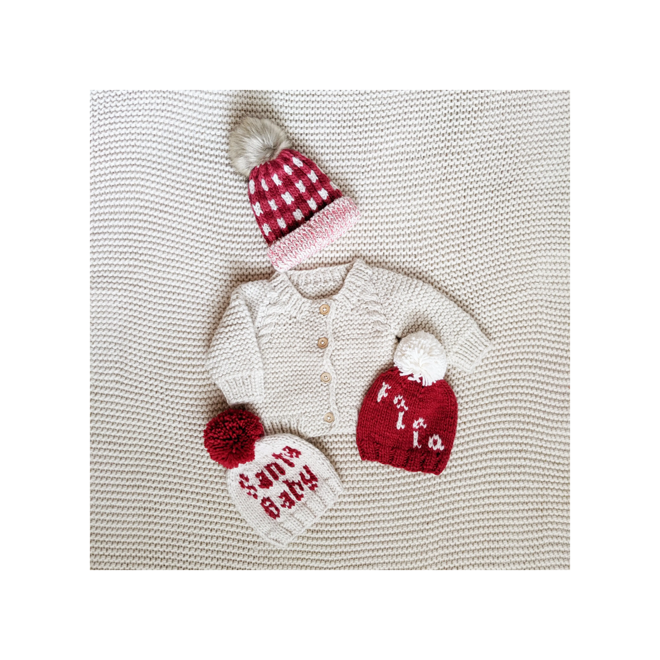 Our cozy blanket is hand knit in a natural tone. It is the perfect size for Moses baskets, strollers and car seats. Wrap your sweet one in this darling blanket. Pair this timeless blanket with our hand-knit sweaters and hats. Makes a beautiful gift too!