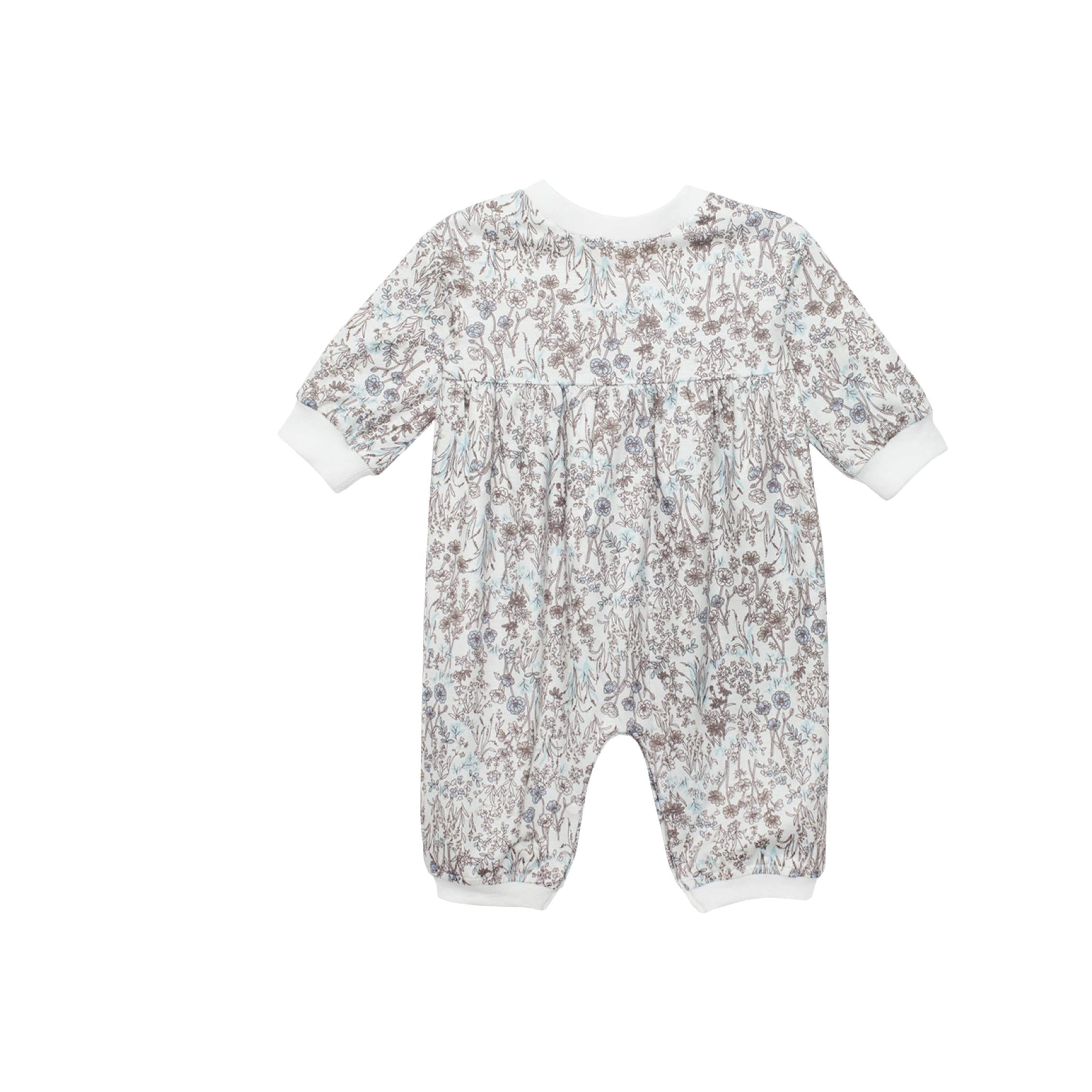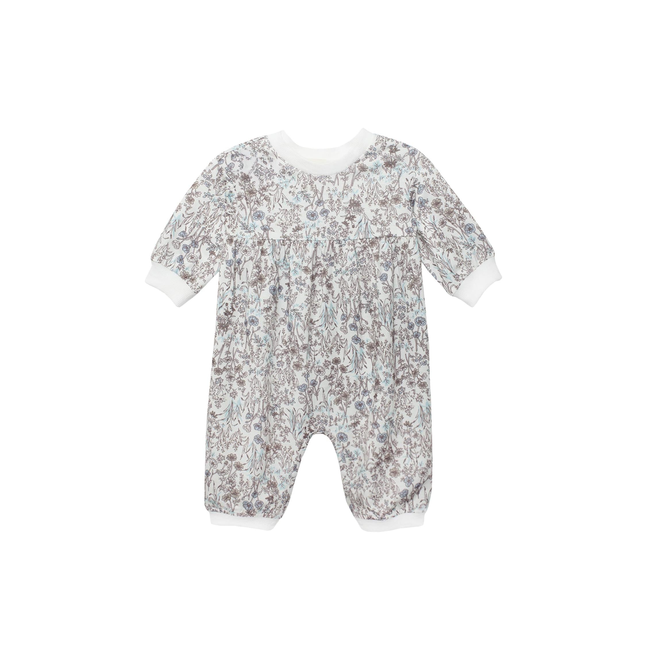 This charming velvety soft romper features a sweet floral print with a crisp white ribbed collar, cuffs, and ankles for a cozy fit. The snap bottom closure adds easy diaper changes, perfectly coordinated with the matching sibling dress and headband to create adorable family moments. Perfect for playful days and sunny strolls!