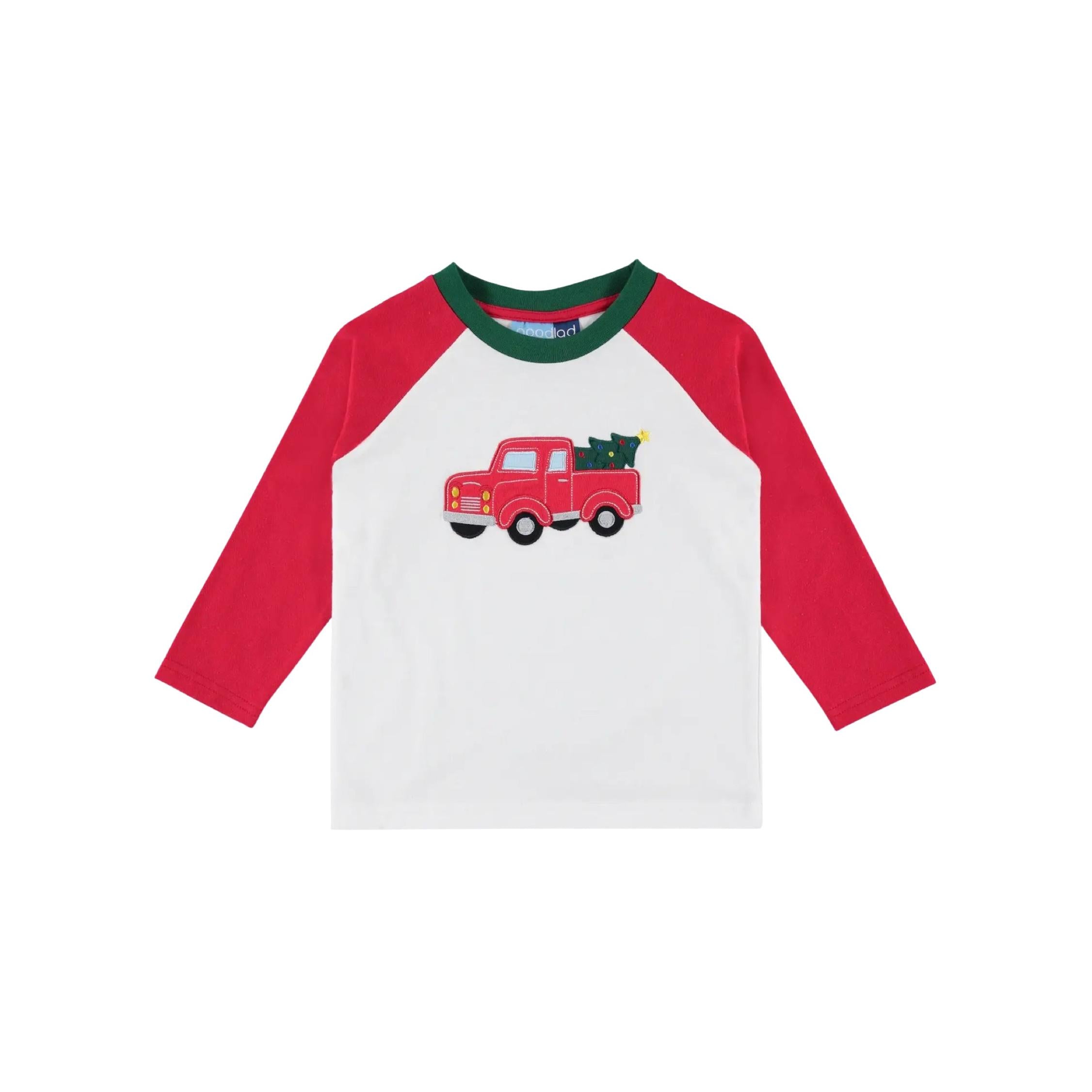 This festive long-sleeve shirt features bright red sleeves and a cozy white body, perfectly showcasing a charming Christmas truck applique. Designed for holiday fun, it adds a cheerful touch to any little boy’s outfit, making holiday memories even sweeter. Comfortable and playful, it’s ideal for spreading seasonal joy!