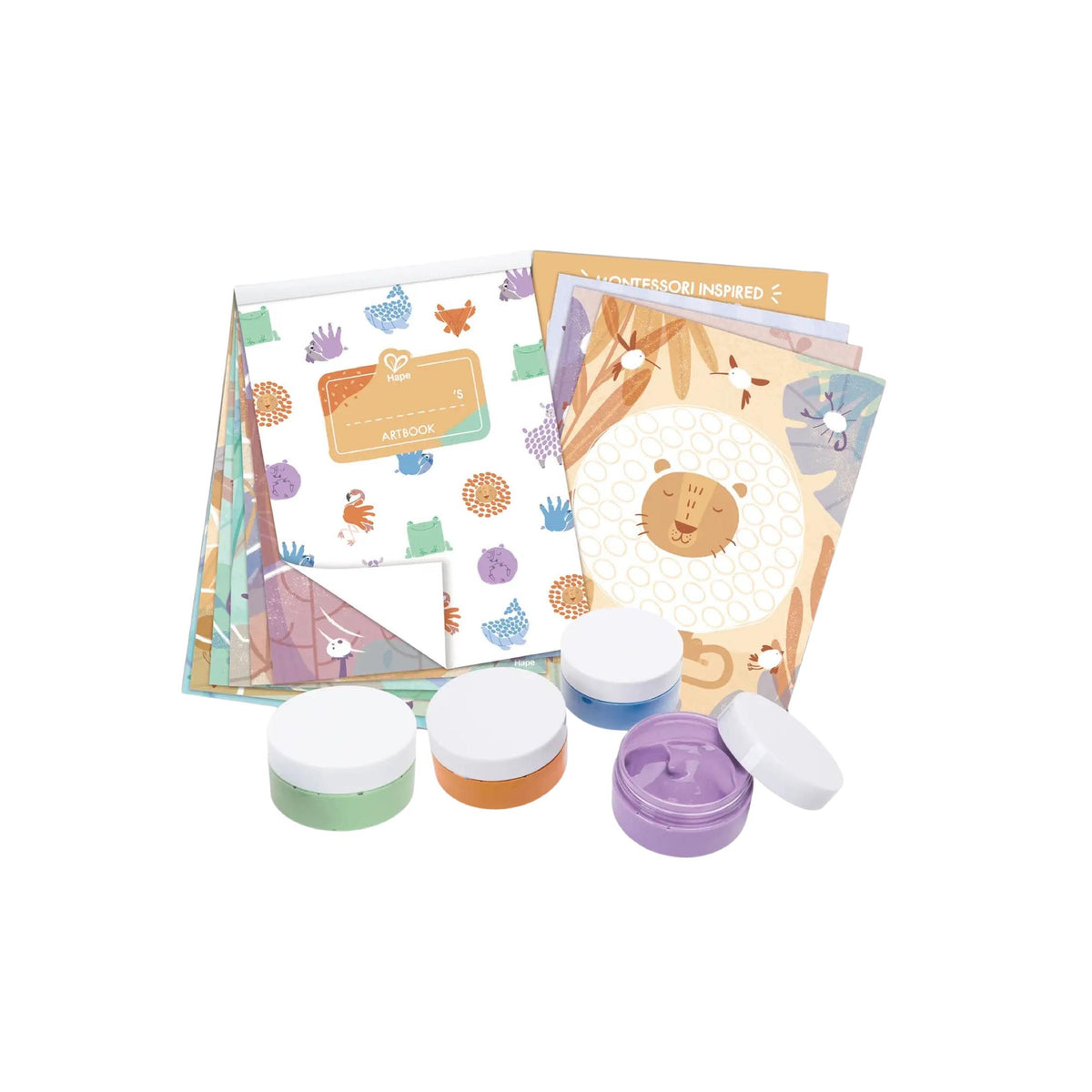 Introduce children to the world of art with this complete finger painting pack. With 9 animal pictures to paint and four pots of finger paints, this pack not only inspires creativity but also aids in developing fine motor skills, color recognition, and positive expression of emotions. Perfect for sensory play and learning through play.