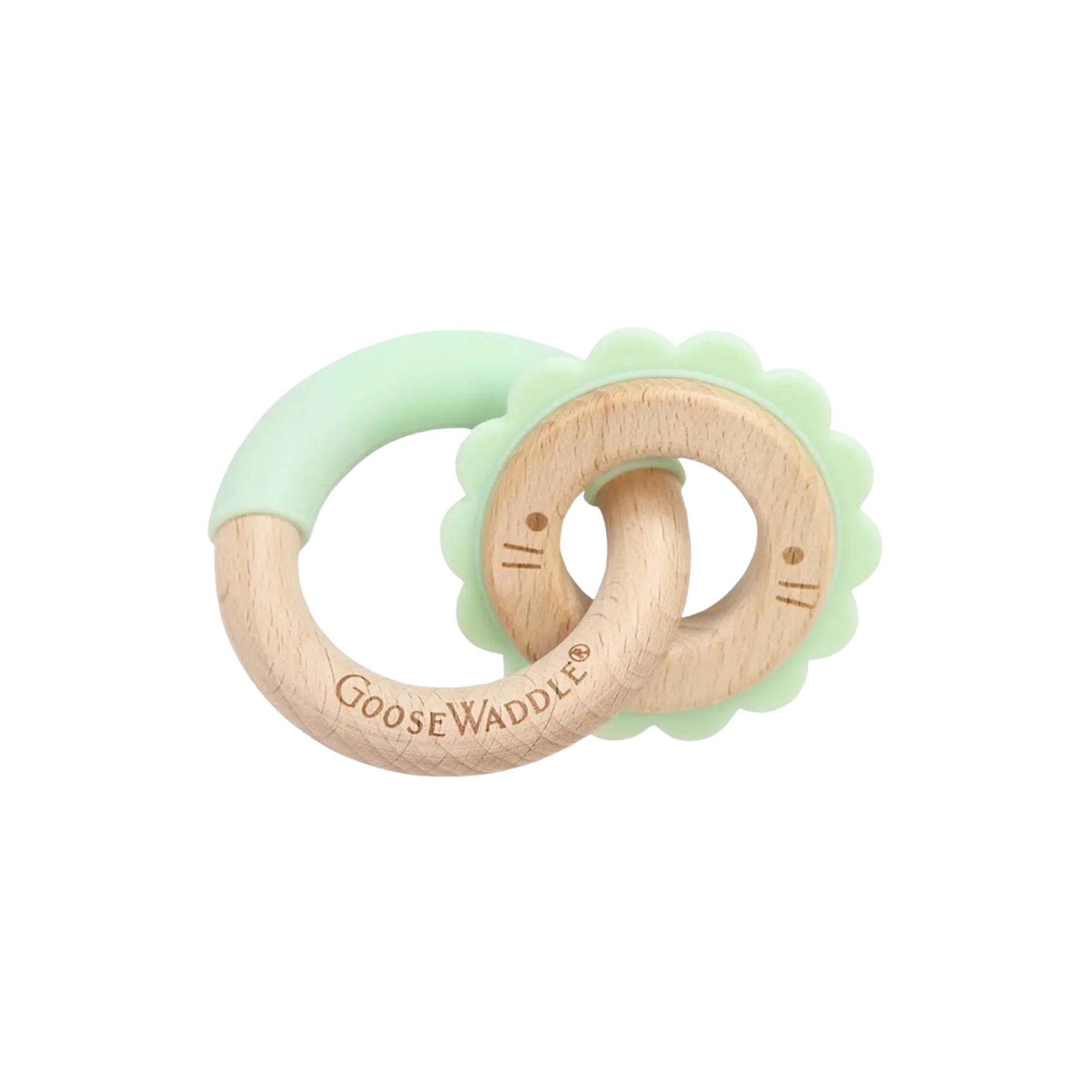 Our Silicone + Wooden Double Teether provides out of this world comfort for your little one's sore gums. Made with the softest silicone and natural birch wood sourced from the US, this teether offers both a soothing and safe option for teething. Say goodbye to discomfort with our dual material teether. Add a beautiful knit blanket for a thoughtful baby gift.