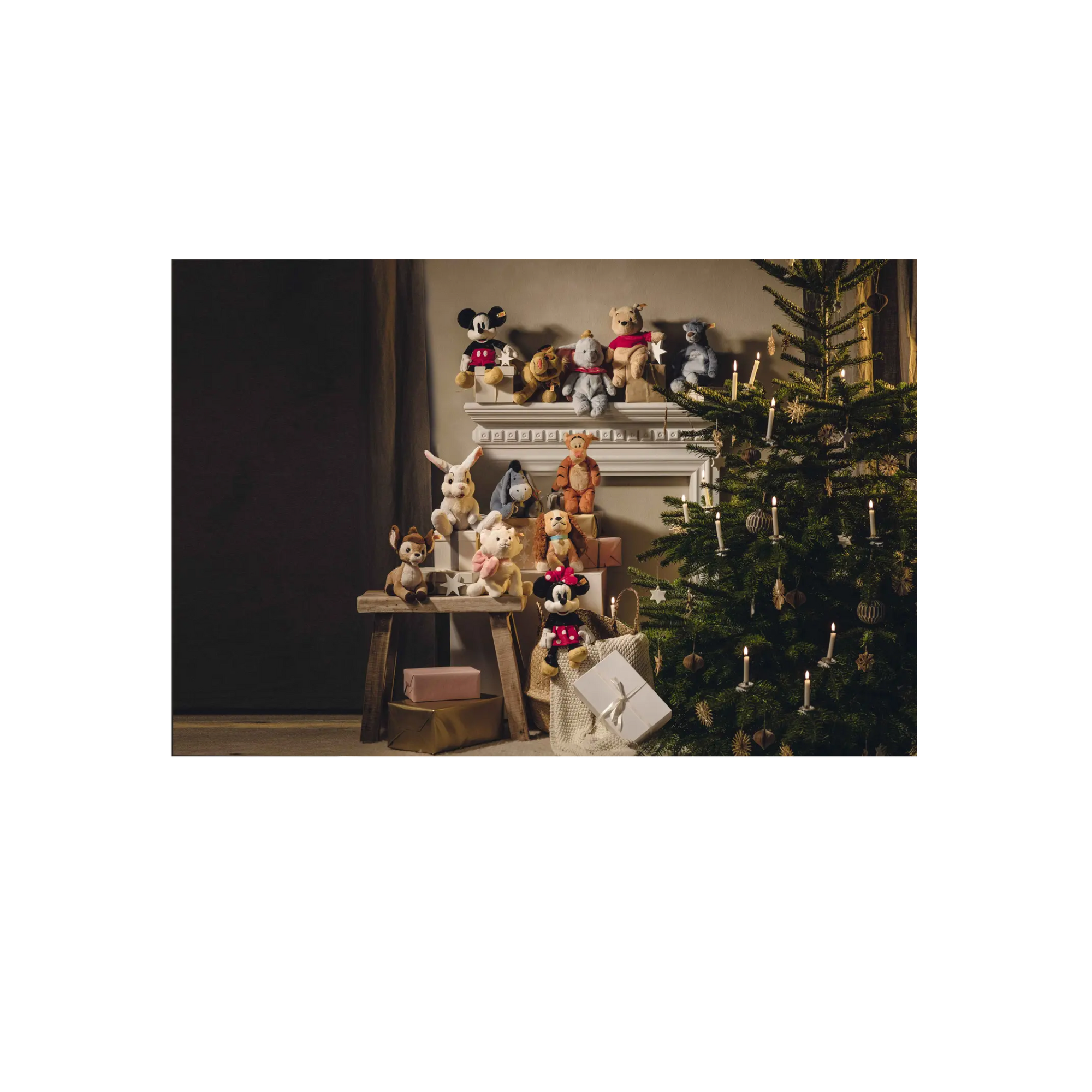 Bambi’s best friend Baby Thumper is sewn from the softest plush imaginable, and features bean bag stuffing that makes him even more cuddly and the the perfect size for little hands and big hugs. Officially licensed by Disney, each thumper is individually handmade to the highest standards of quality and safety. He an adorable plush pal that every tot will fall in love with. Child safe eyes, stainless steel Steiff signature ear tag.